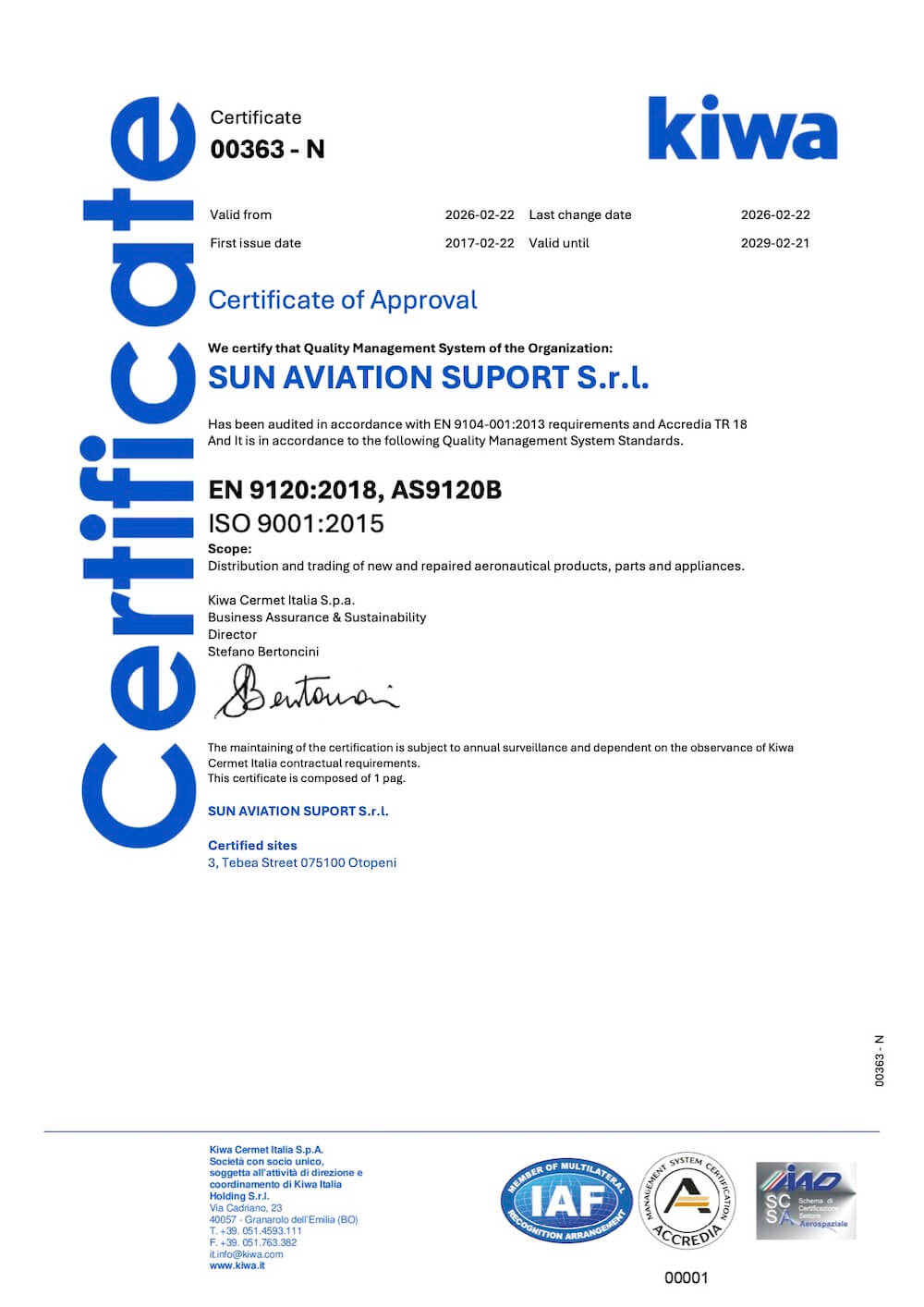 Sun Aviation proudly offers a rich experience in EN4179 testing with initial approval in 2012 by the Romanian CAA (an EASA member) as non-destructive testing and inspection approved arganization with capabilities for Visual – Borescope, Ultrasound, Eddy Current, Magnetic Particle and Liquid Penetrant. In 2024, all our provided services become EASA Part 145 licensed.